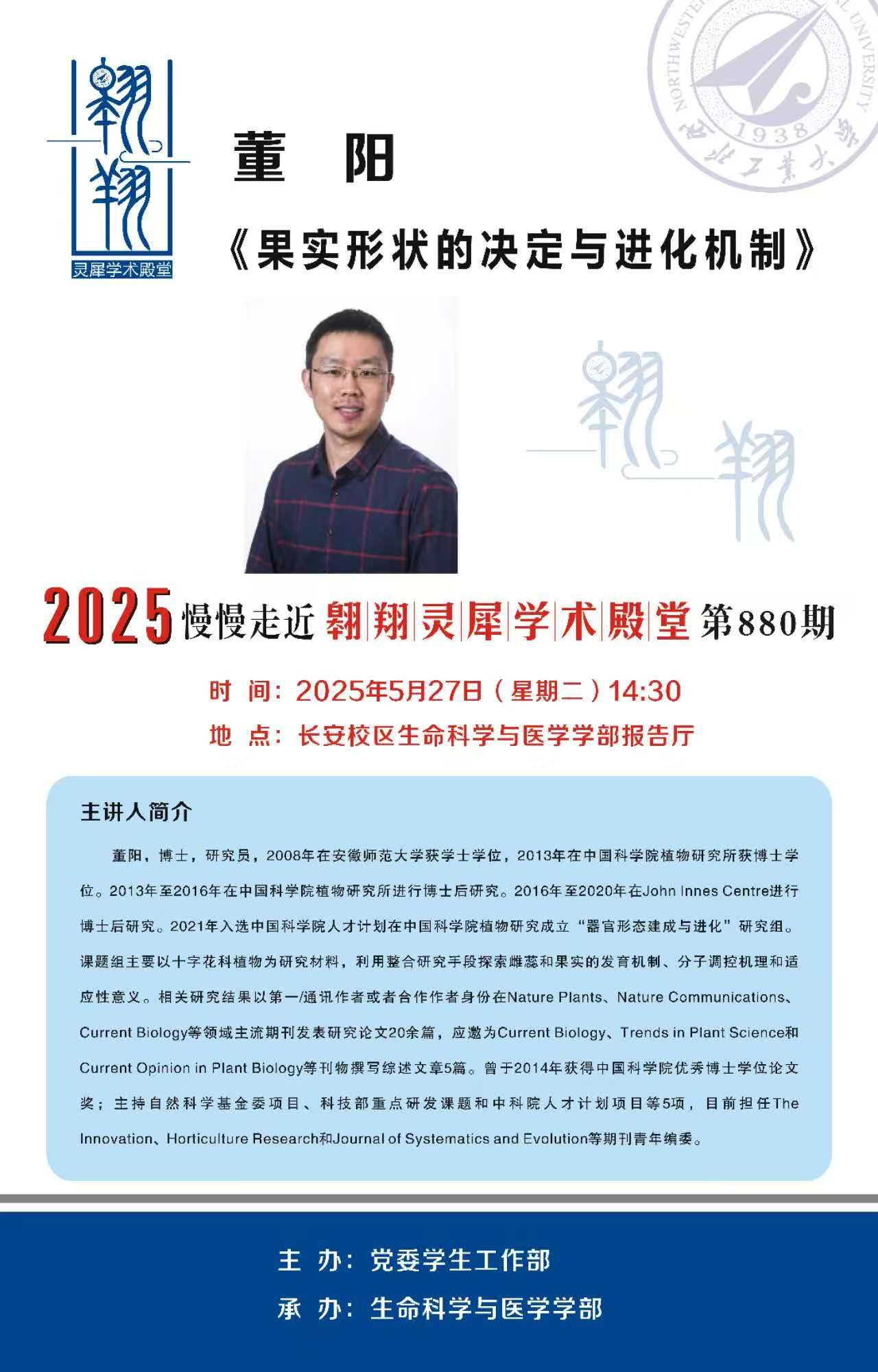 翱翔灵犀学术殿堂,为生命科学与医学学部的师生们带来了一场题为《果实形状的决定与进化机制》的精彩学术报告。本次活动由党委学生工作部主办,生命科学与医学学部承办,学部赵峰老师主持。