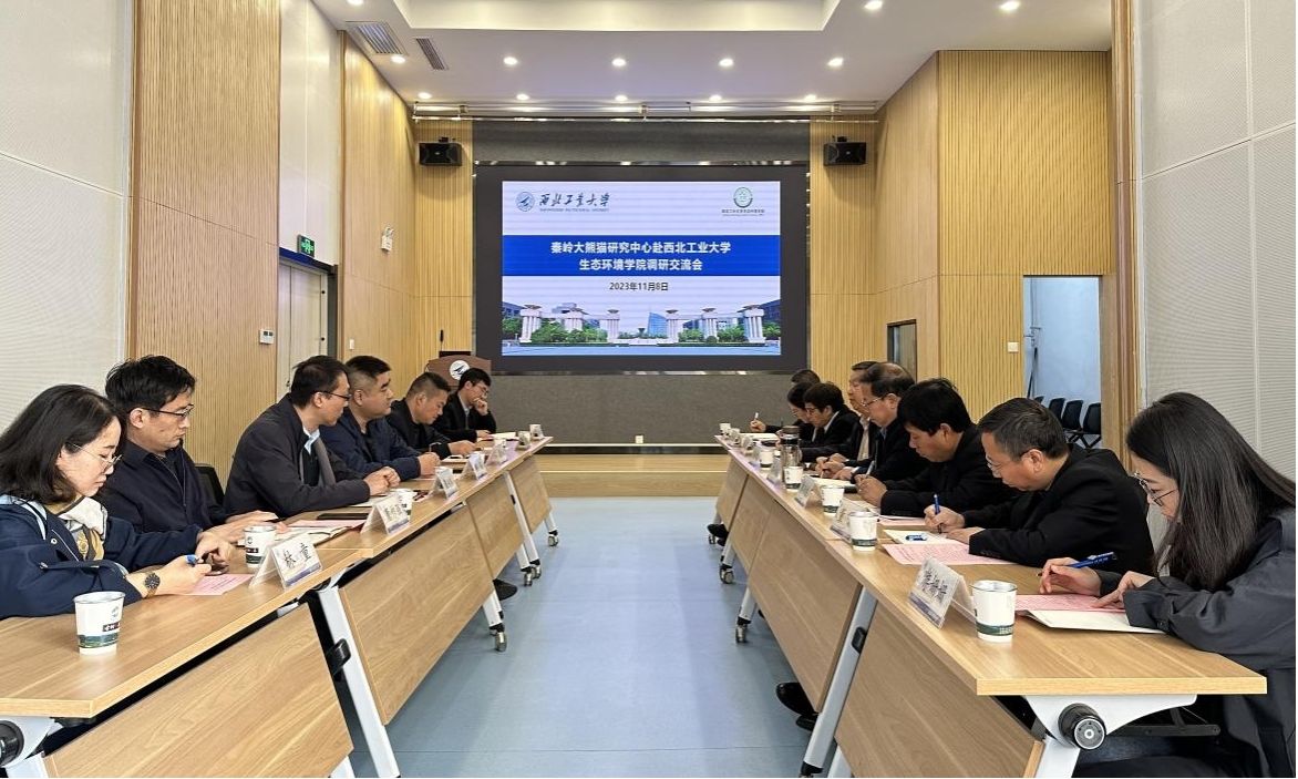 宣传片》。随后,段利兵介绍了与会人员,并对秦岭大熊猫研究中心一行的到来表示热烈欢迎。邱强向参会人员介绍了学院的发展历程、学科特色、科研成果等方面的情况,并表示希望未来能与秦岭大熊猫研究中心在人才培育、科研项目上有进一步合作。高更更详细介绍了单位的基本情况,他表示,中心主要开展野生动物的救护和饲养繁殖工作,期待能够加强与学院在科学研究方面的合作。张智锋表示,希望通过此次相互交流,探寻新的研究方向和切入点。郝占庆结合团队的研究方向和研究内容作了简要介绍,随后原作强以《秦岭森林生态系统空天地一体化生态监测实践》为题介绍了秦岭生态碳汇监测网络,并分享了空天地一体化具体案例。