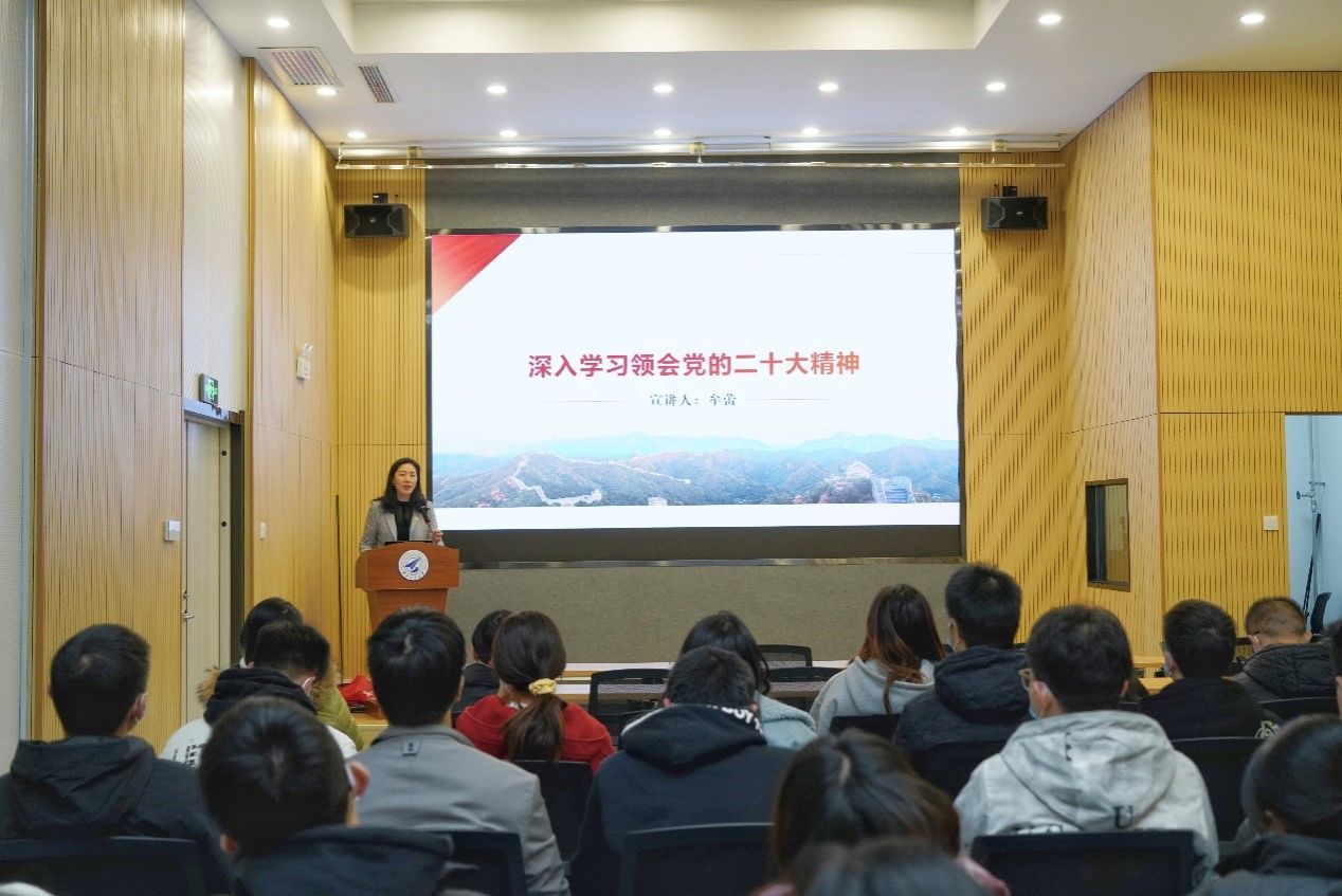 为进一步学习宣传贯彻党的二十大精神,深刻认识党的二十大的重大意义,1130日,*色情漫画 党总支书记、副院长牟蕾面向全体师生党支部书记、支部委员、积极分子、发展对象和办公室管理人员,开展了“深入学习领会党的二十大精神”的专题宣讲。