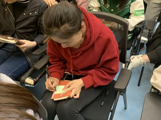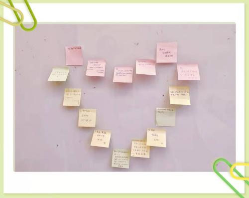 毕业生分享结束后,学院的本科生和其他年级的硕士生为毕业生送上毕业寄语,其中杨治春说道“希望你们在新的人生道路上。有新的开始,新的起点,一路顺风,多回学校看看,这里有你们美好的回忆。”同学们也纷纷在便签上写下自己的祝福,愿2022届毕业生前程似锦。