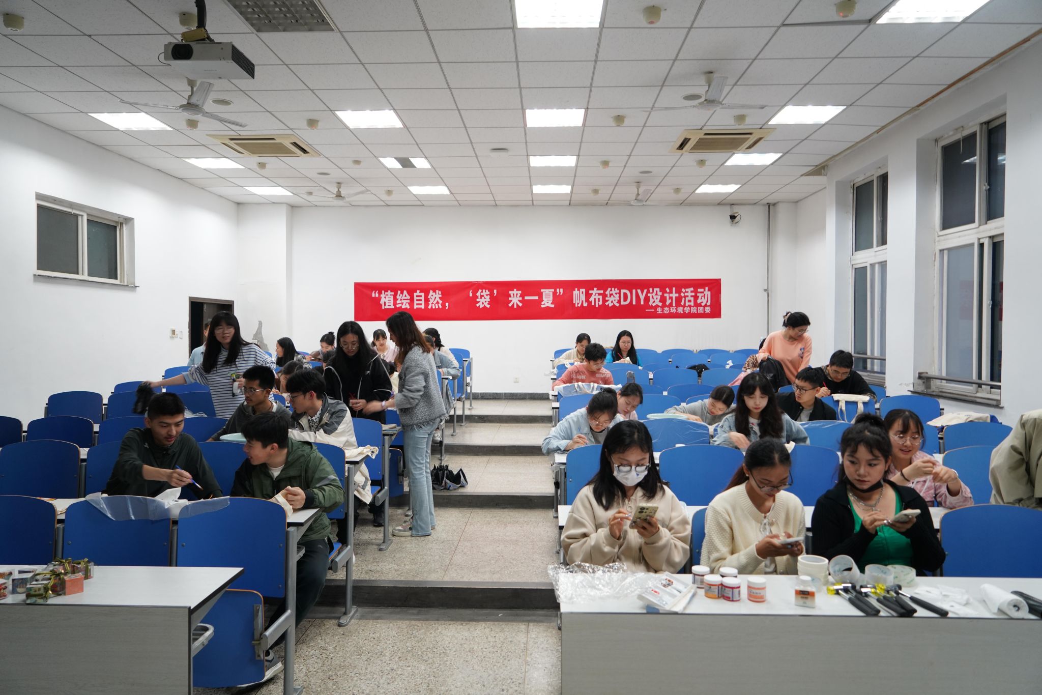 为深入学习贯彻习近平生态文明思想 ,引导学生树立人与自然和谐共生的理念,丰富学生的课余文化生活*色情漫画 于6月3日成功举办“植绘自然,‘袋’来一夏”帆布袋DIY设计活动。