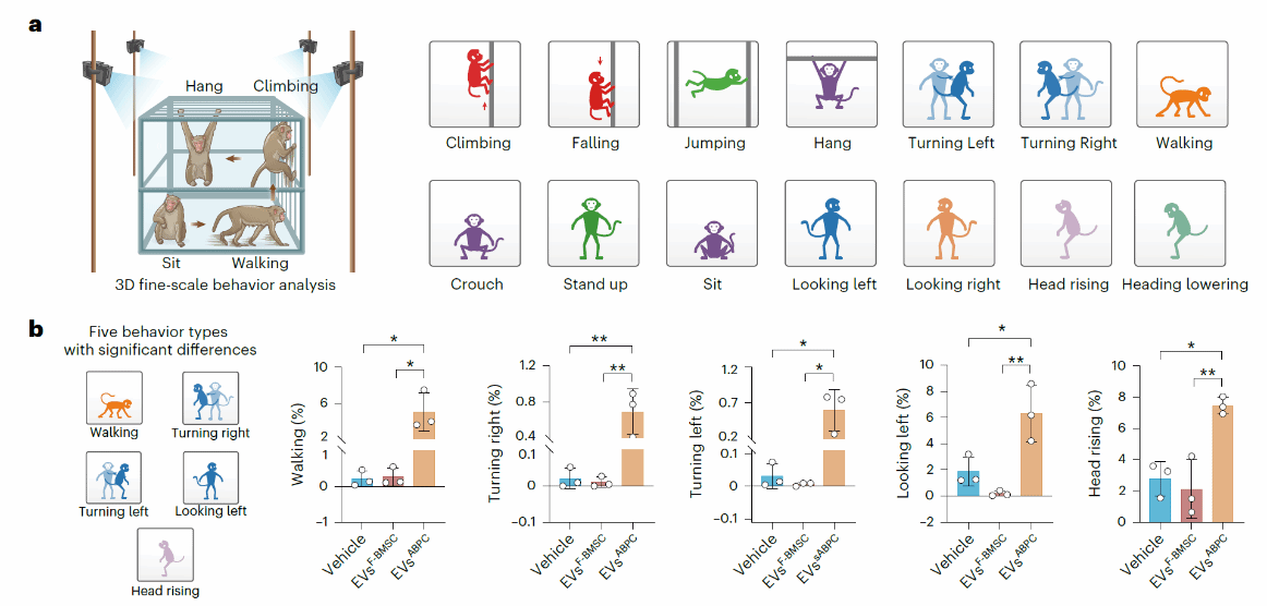 EVsABPCs治疗后恒河猴运动能力显著提升