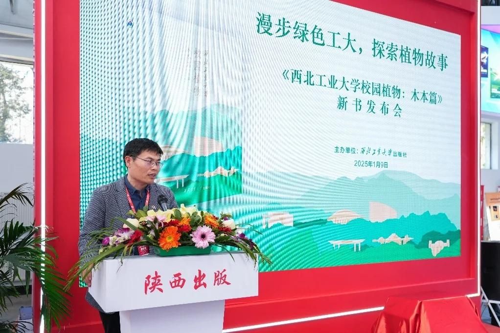 主编贾仕宏老师在现场分享了这本书背后的故事。他提到,尽管西工大是一所工科院校,但校园的美丽给他留下了深刻印象。“西工大校园中究竟有多少种植物?”“它们分别分布在哪里?”,这些疑惑给了他灵感,他组建学生团队开展研究,历时四年,最终完成了这本书。全书共收录了友谊校区和长安校区木本植物53科184种,内容分为植物物种介绍和植物笔记。值得一提的是,植物笔记部分全部由学生撰写,内容不仅涵盖了每种植物的趣味故事,还与学校的历史和文化紧密相连。贾老师表示,希望读者通过这本书感受植物与学校的深厚联系,领略校园植物的独特魅力,同时,也希望本书能成为读者的植物欣赏指南。