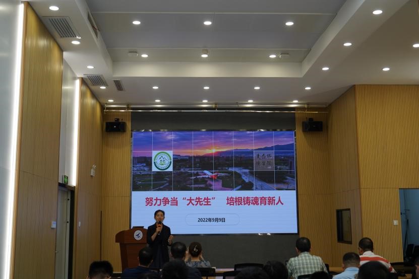 开展“师德师风建设月”活动,召开教师节座谈会暨师德师风建设专题报告会,学院领导班子和全体教职工参加了此次大会。会议由学院党总支书记、副院长牟蕾主持。