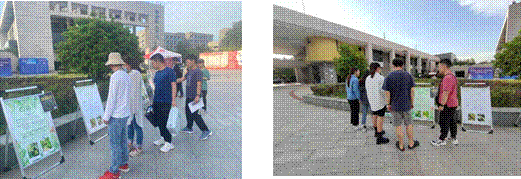 根据活动主旨,工作人员最终挑选出20幅作品进行展览。5月18-21日,主题展览活动在翱翔学生活动中心广场顺利开展。为让观众更具体、详细、准确地了解秦岭与校园植物,展览期间,学院安排了生态学专业的学生作为志愿者提供讲解服务。同时,为了解学校师生对生态环境保护的认识,志愿者也对参观人员进行随机访问调查,以为之后系列展览活动提供建议。