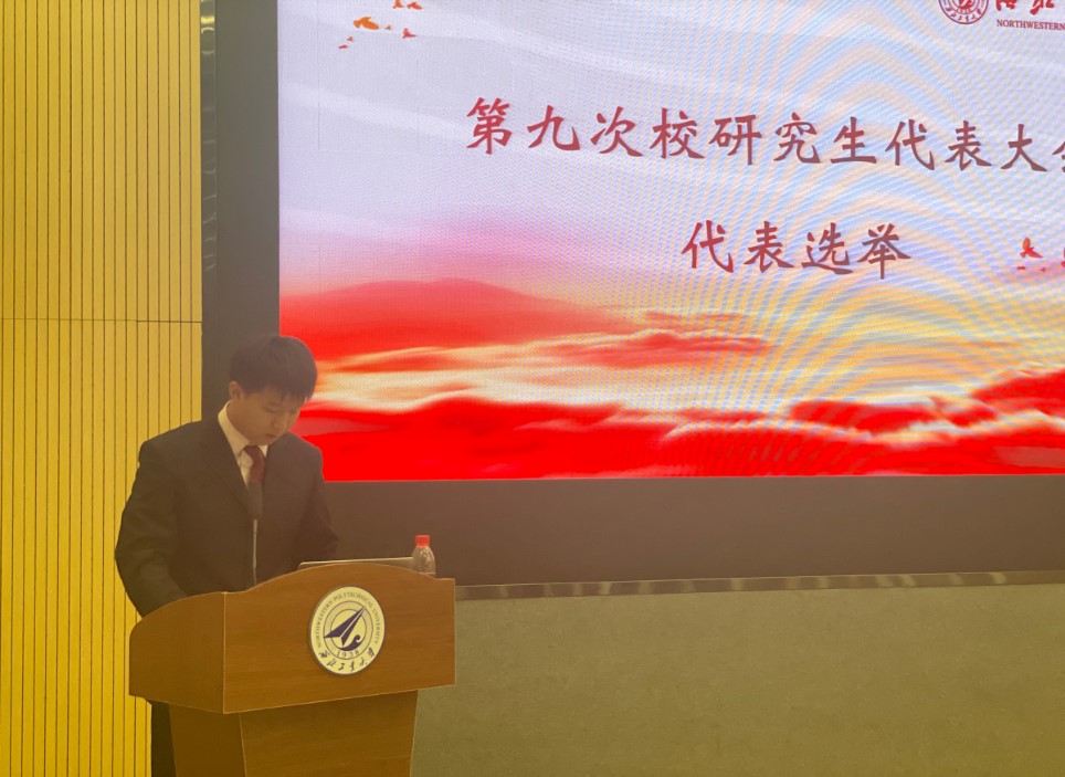 校研究生会代表王睿和院团工委书记喻军强先后致辞,充分肯定了过去一年来院研究生会各项工作取得的成效,对研究生代表大会的顺利召开表示祝贺