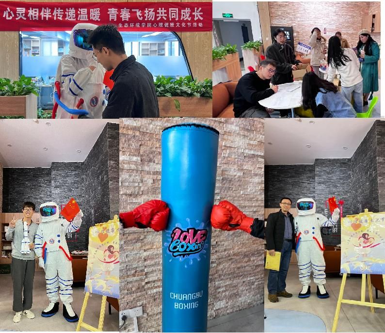 11月17日下午,在学院沙龙区组织开展了心理主题互动活动。参与者将遇到的一些困惑写在纸条上,置于密闭箱中,参与活动的每个人随机抽取纸条,分享自己的经验或看法,大家彼此之间相互交流。同时,在沙龙区放置解压拳击沙袋供大家进行情绪宣泄。活动现场,穿着卡通宇航员太空服的工作人员给同学们送去“爱的抱抱”,并合影留念,带动了大家的激情并活跃了现场气氛。